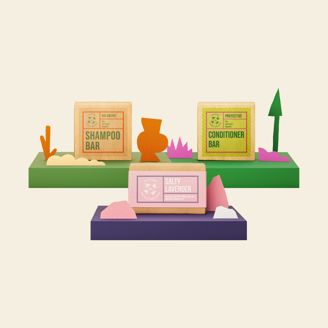Our customizable Starter Set helps kickstart your conscious care routine. Choose your favorite soap bar for effective cleansing , a shampoo bar for an invigorating wash , and a conditioner bar for nourished, smooth hair. This eco-friendly trio offers a high-quality and efficient care tailored to you